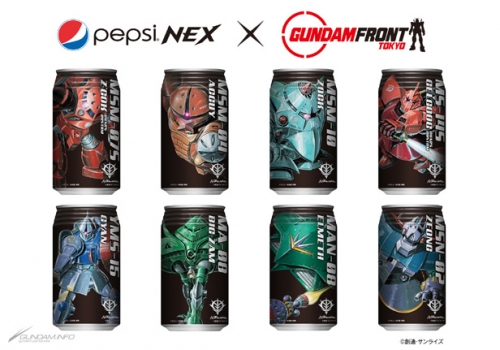 東京台場「鋼彈東京最前線」與三得利的商業合作企劃第2彈,印製「夏亞專用茲寇克」、「亞凱」等全8種MS插畫的「百事可樂NEX 設計罐」,將於9月4日(二)起全國限量發售。