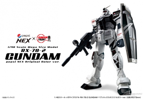 此外,8月7日(二)起只要購買第1彈「百事可樂 設計罐」及「百事可樂NEX 設計罐」等百事系列商品,就有機會抽中融入「百事可樂NEX」LOGO的原創設計「1/48 超大尺寸模型 鋼彈」,共有1,500個名額,贈獎特惠活動現正實施中。