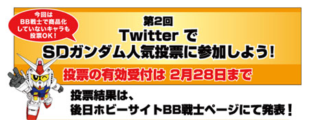 目前正在「BB戰士25周年」官方網站上舉辦「第2回 Twitter SD鋼彈人氣投票」。