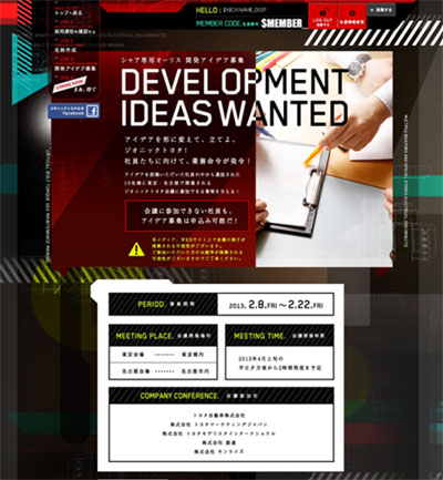 本次活動在吉翁尼克豐田員工特設網頁實施,登錄社員後提供你的創意,就有機會參加4月中旬預定在東京與名古屋舉辦的「吉翁尼克豐田公司會議」,共有10個名額。「吉翁尼克豐田公司會議」是針對今後商品化及活絡相關活動,來與參加社員積極進行意見討論。