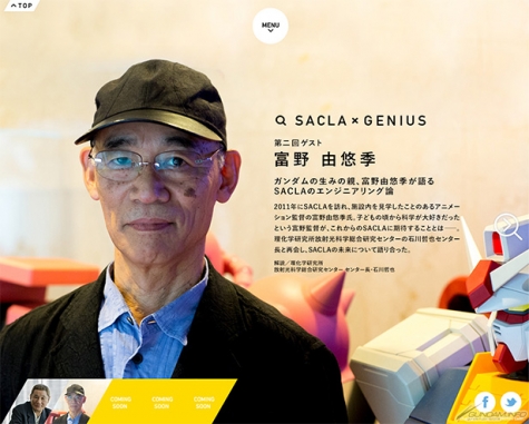 由獨立行政法人理化學研究所・放射線科學綜合研究中心進行研究,X射線自由電子雷射設施「SACLA」的特設網站上,刊登了邀請富野由悠季導演擔任來賓的長篇訪談。