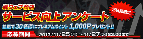 BANDAI 官方購物網站・PREMIUM BANDAI 的「魂WEB商店」,從今天11月25日(一)起到27日(三)限期3天,服務改進問卷實施調查中。