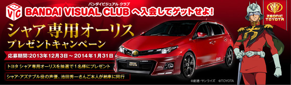 當中還會抽出一位幸運兒,可以獲得蔚為話題的「夏亞專用AURIS」這項大獎,而交車時飾演夏亞・阿茲納布爾的聲優・池田秀一也會同行。