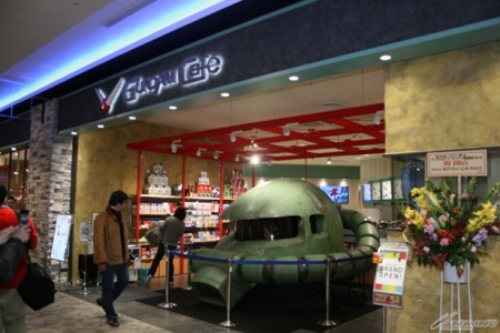 「永旺夢樂城幕張新都心店」以『機動戰士鋼彈』的「吉翁公國軍」為主題,是 GUNDAM Café首家概念門市,入口處有巨大「1/1比例 MS-06 薩克II頭部」迎接來店客人。