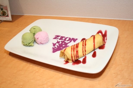 ▲「GUNDAM Café 永旺夢樂城幕張新都心店」限定的新菜單之一「吉翁 融冰可麗餅盤」(含稅750日圓)。以冰淇淋表現「夏亞專用薩克」和「量產型薩克」!