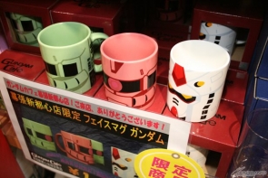 ▲在GUNDAM Café各門市及台場「鋼彈東京最前線」販售中的鋼彈周邊商品也一應俱全!印有「CHIBA MAKUHARI」LOGO 的大臉馬克杯是幕張店限定商品!