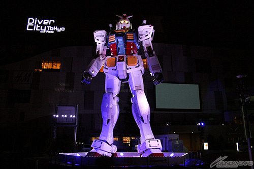 站立在東京・台場「Diver City Tokyo Plaza」祭典廣場的「實寸大鋼彈立像」,現正實施中的晚間光影秀和壁面演出「WALL-G」影片放映,12月31日(二)除夕夜將延長表演時間。