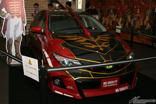 「弗爾.伏朗托專用AURIS」以去年10月發售的「夏亞專用AURIS」為基礎改裝,從側邊“帶袖的”花紋裝飾及車頭的新吉翁徽章等等,連小細節都很講究的設計,是全世界僅有1台的弗爾.伏朗托造型車,5月10日(六)至30日(五)這段期間在新宿Piccadilly展出後相當受到矚目。