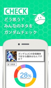 「GUNDAM CHANNEL」還有由使用者參加的鋼彈相關問卷「鋼彈調查」機能等服務,不光是重度鋼彈迷,一般使用者也可以盡情享受『鋼彈』的廣大樂趣。