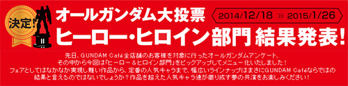 特別菜單是依據先前在「GUNDAM Café」全店所舉辦的「全鋼彈大投票」結果,將「主角&女性角色部門」的前幾名角色作成餐點。