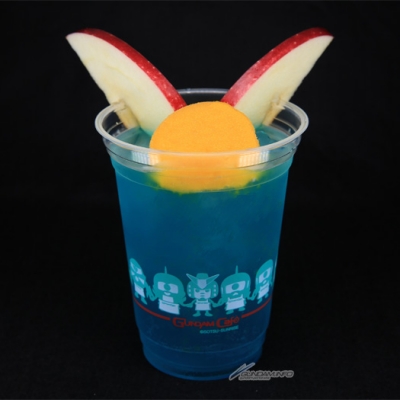 將TRYON 3鋼彈以紅・藍・黃3色來表現。在爽口的桃子汽水風味飲料上,加入芒果口味的雪糕。