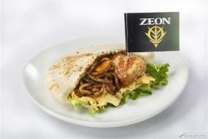 附吉翁軍的旗幟。炒麵使用「多福醬汁」。