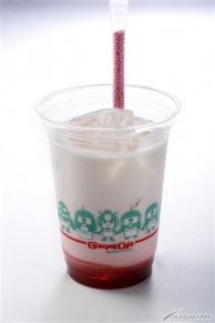 ■草莓牛奶口味。飲用時將吸管放在正中間能夠重現那幕經典場景。