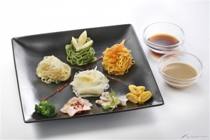 ■利用紅色「辣味中華醬汁」、白色「起司醬汁」進行顏色變化。