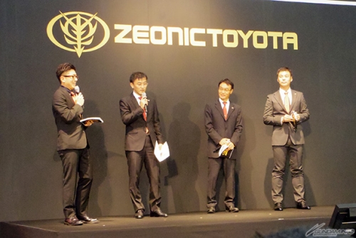 發表會一開始首先由TOYOTA MARKETING JAPAN的田浪優,以及豐田汽車的平松主、TOYOTA MODELLISTA INTERNATIONAL的町田隆夫來介紹車輛,和動畫中MS的進化一樣,車子也同樣在進化,和2013年發售的初代「夏亞專用AURIS」相比成功打造出相當程度的進化。