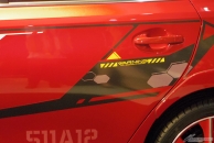 以最新MS為概念的外觀設計,由BANDAI NAMCO集團全力協助,藉由左右不對稱的貼紙提高存在感。內部裝潢可以感受到符合大佐階級的高級感,除了有設置提升駕駛舒適度的專用座椅外,還搭載了有如坐上MS一般的聲音效果。