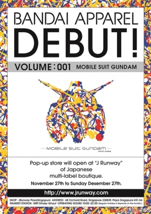 東南アジア向けのECサイト 「Shop.JRunway」では、オリジナル扇子、Tシャツ、ショートパンツ、キャップなど様々なガンダムアパレルアイテムをラインナップ。さらに、11月27日(金)から12月27日(日)までの期間限定で、 シンガポール・オーチャードロードにポップアップ店舗が開店。アイテムを実際に手に取って購入することができる。