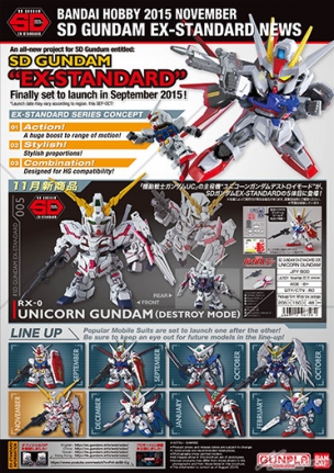 海外でのみ発売されているガンプラ「SD GUNDAM EX-STANDARD」シリーズは、従来のSDガンダムシリーズに比べ可動域が広くスタイリッシュなフォルムに加え、HGシリーズとの連動・組換ギミックが導入されている。