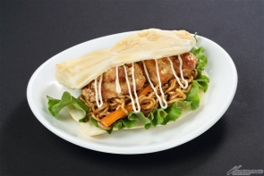 【左】鋼彈模型燒DX(豪華版) 炒麵&炸雞塊 價格:300日圓(含稅) ※