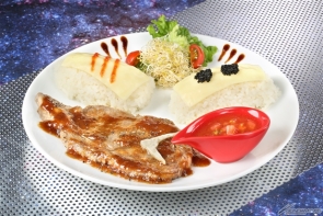 【左】<秋葉原>紅與白的宿命 ~ν鋼彈和沙薩比的大份量牛排~ 價格:1,404日圓(含稅)