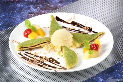 【右】<秋葉原・大阪>瑪莉妲・庫魯斯的全部 ~抹茶餡餅配香草冰淇淋~ 價格:950日圓(含稅)