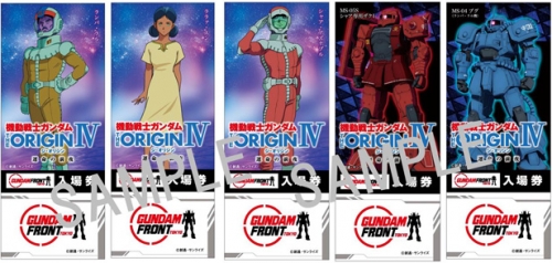 圖樣為11月19日(六)開始於全國15館間劇院限定上映2周的,『機動戰士鋼彈 THE ORIGIN IV』中蘭巴・拉爾、拉拉・遜、夏亞・阿茲那布爾、MS‐05S 夏亞專用薩克 I、MS‐04 布古(蘭巴・拉爾機)5種。