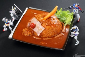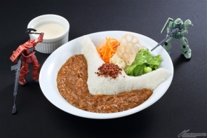 將腦波傳導型鋼彈獨特的巨大身軀以黑咖哩,還有補充精力的肉,一起盛盤來表現,想必能一定成為您對抗今夏酷暑的可靠夥伴吧!
