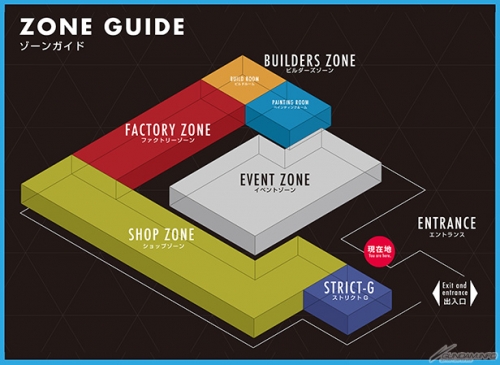 約1983m²(約600坪)的設施内,除了有販售約2,000種類商品的「商店區」,還有可組裝所購入商品的「組裝區」,可學習模型生產流程的「工廠區」,舉行企劃活動及販售限定商品的「活動區」等等。