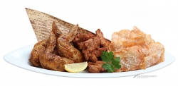 左起為「靈光之路海帶沙拉」、「強獸的肉品盤」、「丹拜因(含酒精)」、「超極・潔莉兒(含酒精)」