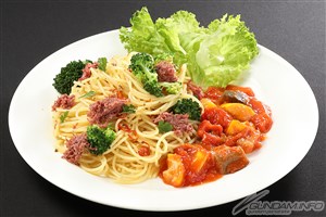 ・粗鹽醃牛肉蒜辣義大利麵&炒茄子