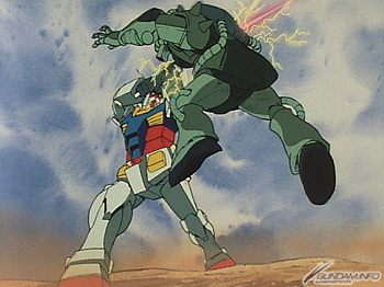 首先在第一話就被作品所震懾的是,傳達宇宙世紀0079的世界觀的序曲部份。70年代的機器人卡通常以無國籍為舞臺展開故事。但是『鋼彈』卻以百年(世紀)為單位的宇宙開拓史作為開頭,活在其中的人們建立了國家,但是戰爭卻到現在都還未止息,揭示了這般大規模的物語世界與歷史觀。這個故事,只不過是壯大的敘事詩中的一部分――這種規模,在當時是相當劃時代的。