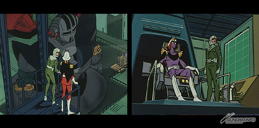 剛送到夏亞手邊的是新鋭機傑爾古格。步槍、光束切斷兵器、手持護盾,從裝備可瞭解他們研究鋼彈的成果。雖然是傑爾古格量產機初次在畫面上登場,但是實際配備的數目似乎相當少。