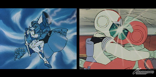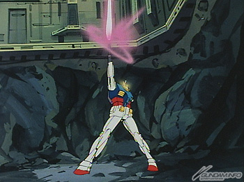 鋼彈雖然破壞了吉翁克的胸部,卻受到反擊被破壞了頭部。攻擊者同時也受到攻擊。雖然不是生物,但還是給人「鋼彈死了?」的衝擊感。「只是主攝影機被幹掉而已!」阿姆羅繼續著戰鬥,展現前所未有、MS之間戰鬥的硬質。