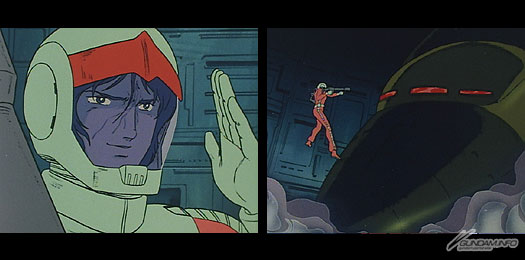 之前即使拉拉拜託也不想換穿宇宙服的夏亞,本回終於被逼到不得不穿上了。夏亞是從吉翁克的胸部進去的,可以看成他之後在移動到頭部的時候穿上的。