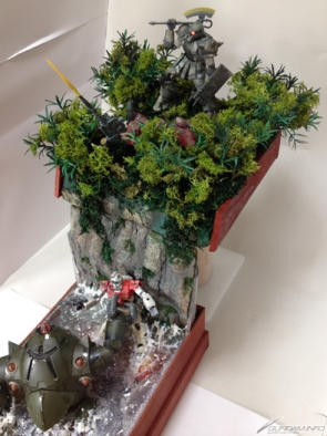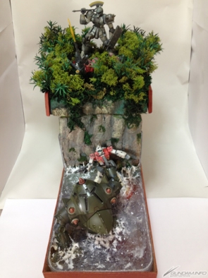 本次的最優秀獎得獎作品是大內勝利&大內悠生的作品「戰場之絆『擊墜目標!你那邊狀況如何?』」。將此得獎作品忠實呈現的這張插畫,不但仔細地描繪薩克的迷彩塗裝以及MS的汙損,還將場景模型以插畫獨有的魄力來表現.。