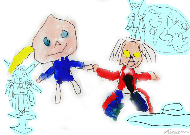 最喜歡鋼彈AGE的5歲兒子畫的圖。阿瑟姆和哲哈特。