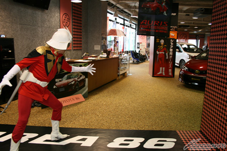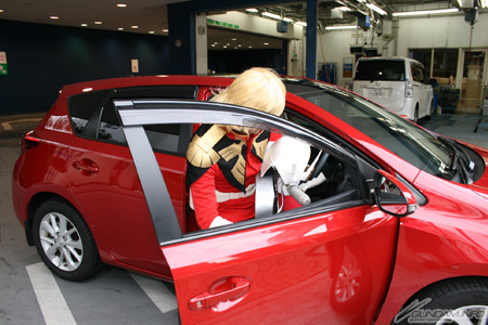 跟Netz連鎖店約好看車的日子終於到了。到店內的首要之務就是親眼確認夏亞專用AURIS的帥氣外觀。以夏亞專用機為主題的紅色車體、讓人聯想到吉翁公國軍MS的外裝、採用專用機設計的內裝、當然還有仿指揮官機才有的“角飾”外觀之「ZT指揮官用天線」。其魅力就算不是鋼彈迷也會不禁看呆。