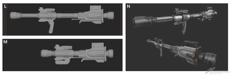 鋼彈EX火箭發射器的,L:展開時、M:収納時、N:完成模型。