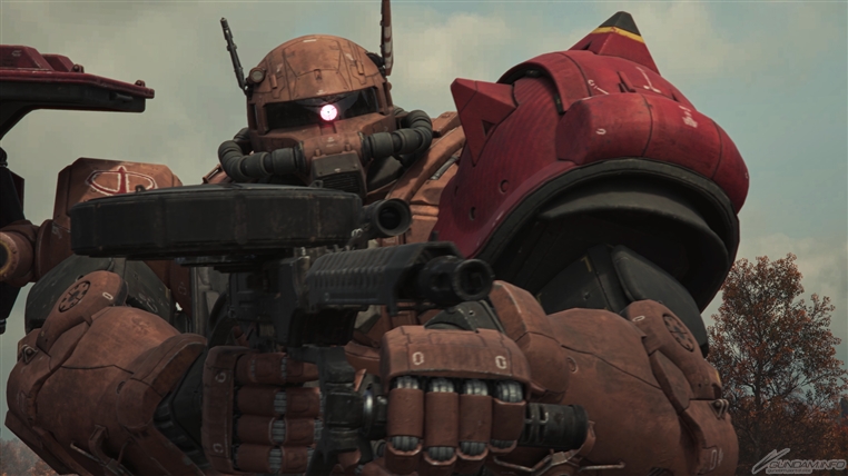 「光是MS武器就有20個以上,所以有時會由建模美術人士提出設計案。山根也很爽快的採納,所以很愉快。因為火箭發射器維持展開狀態的話很難攜帶,所以就提出可以折疊縮短裝在背上的構造。沒有製作伸縮機構,以鏡頭為基準來分別使用」(鈴木)