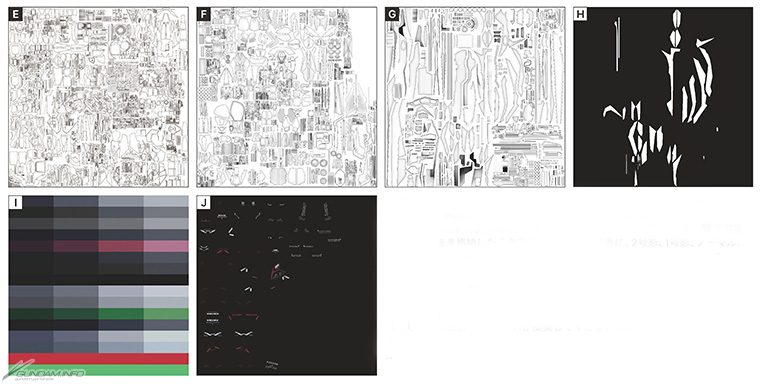 E~G:DELTA ZAYIN的線條以及環境遮蔽(以下簡稱AO)的材質。將RGB各頻道整合為一個材質減少了數據量。尺寸為8,192像素立方。
