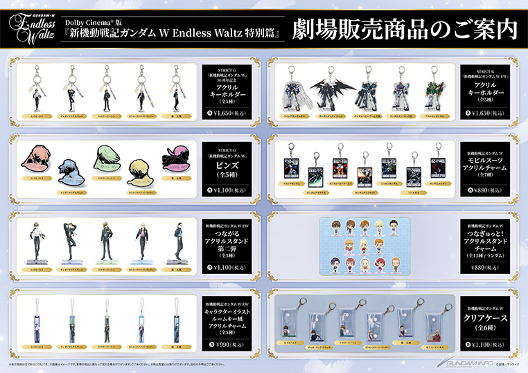 一套以30週年主視覺設計的罐頭徽章和以30週年紀念視頻“新機動戰記鋼彈W-Operation 30th-”的設定圖片設計的壓克力支架。
