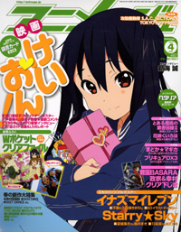 動畫電影『K-ON!輕音部』決定在12月3日上映!請記得「1,2,3是K-ON!」唷♪ ……因為所以,Animage 4月號企劃了封面和頭版的大特輯♥ 封面是あずにゃん的個人照☆ あずにゃん手裡拿的是白色情人節的回禮。這可是有背後故事的唷~。想知道背後故事的人就一定要看雜誌唷☆ 還有山田尚子監督和中山佳久製作人以及各位聲優的留言! 敬請期待♪ 另外再獻上將在3月16日發售的最終回Blu-ray &DVD裡未播出內容的介紹,由〈中の人〉們2月20日在SAITAMA Super Arena的演唱會現場報導等正夯的情報☆ 當然,附錄也是『K-ON!』唷~! 大受好評的資料夾在這個月號變身超大型登場♪ 放課後TEA TIME的插畫大量使用、書頁型的雙口袋式資料夾☆ 這可是從來沒有的豪華附錄唷♥ 因在劇院放映炒得正熱的『戰國BASARA』墊板也出現囉~♪ 正適合新學期的準備呢。特別附錄海報是高人氣的『閃電十一人』。畫有人氣直線上升的不動明王的插圖,以及片尾動畫圖集的雙面海報!該貼哪邊才好呢?『閃電十一人』的粉絲們不能錯過的特別企劃♪ 當然還有一張夾頁海報,是女孩子間話題沸騰的『Starry☆Sky』。也是動畫和原作遊戲插畫的奢侈雙面海報唷♥ 另外!還有『K-ON!』3種圖卡要送給各位☆ 梓等二年級生的情人節版、唯等三年級生的白色情人節版、最後是4月號封面的あずにゃん等3種豪華圖卡! 排開來一看,沒想到故事進展居然……接下來就看雜誌囉 ♥『K-ON!』的粉絲一定要看「Animage」4月號唷!