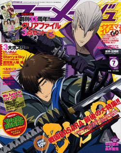 「Animage」今年就是創刊33週年了! 本月號就是紀念號☆ 滿懷著對讀者們感謝的心意特別準備了Special禮物喔♪ 神谷浩史、小野大輔、中村悠一等有名聲優33名親筆簽名的電話卡,以及豪華&超稀有獎品。特集裡也有相關作品的非賣品禮物喔! 承蒙大家一直以來照顧的大感謝紀念號☆封面與封面特集為『劇場版 戰國BASARA-The Last Party-』。現正熱烈公開中的人氣動畫大特集。封面是帥氣的伊達政宗與石田三成♪ 宿敵、對手、忠義與背叛――於決戰之地・關之原所展開的各種情況清楚解說☆中井和哉(伊達政宗)、Capcom名產製作人小林裕幸,以及主唱主題曲的T.M.Revolution3大直撃採訪! 也有大川透(徳川家康)&關智一(石田三成)所做的關之原導覽,讓大家能夠更瞭解更享受電影。此外使用封面插圖製成的『劇場版 戰國BASARA』圖書卡將當作參與者全員特別贈品。 這是動畫版『戰國BASARA』最後的祭典,各位粉絲絕對不要錯過喔☆ 然後豪華附錄是人氣作品透明資料夾3張組♪ A4大小的兩面插圖,共3張一組,只有在Animage! 作品插圖是『戰國BASARA』『K-ON!輕音部』『意呆利』3作品。還有還有,本月號封入雙面海報為人氣急速上升的『TIGER & BUNNY』☆ 正面是虎徹&巴納比的搭檔再加上卡莉娜所繪製的海報,背面則是3人的名場面。 大獲好評的Book in Book 這次是“We Love 雙馬尾”為主題,收集了人氣動畫中所找到的雙馬尾女生。『緋彈的亞莉亞』、『STEINS;GATE』、『魔法少女 小圓』、『K-ON!輕音部』、『光之美少女DX』等等。充滿魅力的可愛髮型少女♪ 33週年記念實現的Noitamina導演對談,『C』的中村健治導演與『那朵花』的長井龍雪導演的共同採訪! 6月10日發售的創刊33週年記念「Animage」7月號!!