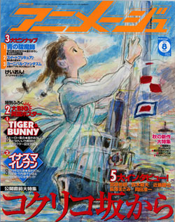 說到夏天就想到吉卜力電影!吉卜力工作室最新作品『來自虞美人坡道』將於7月16日公開!為此「Animage」8月號製作了『來自虞美人坡道』的公開前大特集☆ 宮崎吾朗導演、鈴木敏夫製作人、角色設計/作畫導演的近藤勝也、為女主角「海」配音的長澤雅美、以及飾演俊的岡田准一,毅然執行了5人的訪談。故事介紹加上精彩點分析,電影的魅力襲捲而來! 附錄為B2尺寸的大型雙面海報♪ 是雜誌平時附贈的B3海報加倍大小,插圖的迫力當然也不同凡響。『TIGER & BUNNY』『閃電十一人』等人氣作品的全新繪製插圖,好好享受巨大的尺寸吧♥ B面也刊載了相當充實的報導,可千萬別錯過。『TIGER & BUNNY』附贈含佐藤敬一導演解説的角色設定資料集。『閃電十一人』則含飾演圓堂的竹内順子圓堂篇DVD全篇導覽。不論是看也好、讀也好都超划算的海報☆ 接著,雖然夏天才正要開始,但在動畫界,秋季新作品消息已經是熱門話題。因LEVEL-5×SUNRISE的合作而成為話題的『機動戰士鋼彈AGE』為首、『我的朋友很少』『GUILTY CROWN』『侵略!? 花枝娘』等等,令人期待的作品即將公開! 編集部極力推薦作品是哪一部呢? 敬請期待~! 大受好評的Book in Book是「巫女特集」♥ 『緋彈的亞莉亞』『STEINS;GATE』『青之驅魔師』『BLOOD-C』中登場充滿魅力的少女們的解説☆(雖然混入了1名偽娘,但也相當有魅力♥) 充滿人氣的特別繪製海報×3來了。『青之驅魔師』雙重兄弟浴衣對決加上『Suite 光之美少女♪』響&奏的暑假、『TAKE MOON』是泳裝TYPE-MOON女主角喔☆ 『青之驅魔師』惡魔兄弟對談(神谷浩史×柿原徹也)加上設定資料FILE,報導也相當豐富喔♥ 『K-ON!輕音部』的「輕音部度過暑假的方法升官圖」也能在暑假時與平有一同遊玩,相當實用的海報♪ 動畫迷們的夏天一定要買「Animage」8月號!
