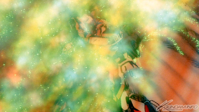 投票結果,榮獲第一名的是ν鋼彈將阿克西斯推開的場景。