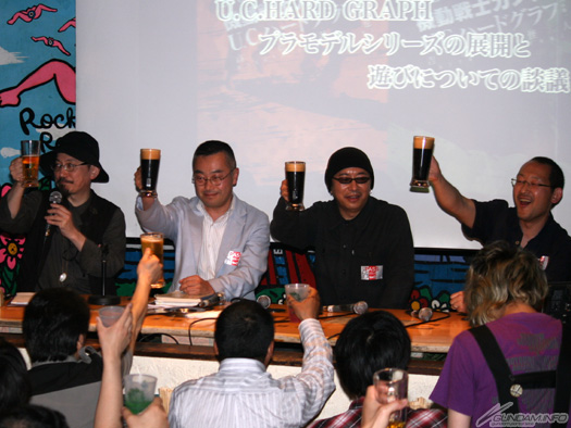 「今天聽到了許多頭一次聽到的話題,真的很開心。在U.C.HARD GRAPH計畫剛開始的時候,需要有人負責製作方面的演出及其他交通整理,所以就由我來負責這項任務了。因此,我也不記得自己有強烈地要求過什麼。大家對世界觀都非常瞭解,所以也都能在這個世界觀中盡情地玩,自由地主張,甚至是製作全新的東西。在高橋老師的作品中,能夠把美國的部分描寫地如此真實,實在是讓我覺得相當佩服,夏元老師也曾多次往來SUNRISE,讓人感受出他的熱心。雖然時常與吉祥寺怪人老師在無關作品的場合見面,但在不知不覺間他也開始寫起小說來了。真是讓人覺得相當感慨呢」(今西隆志)