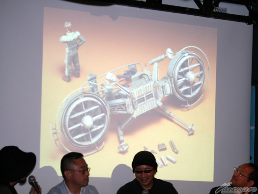 隨後話題轉向第1彈商品,瓦帕的誕生過程。在他們的預想中,系列第1彈若是以核心戰鬥機為主的話,焦點就不會擺在人物Figure上,形象也會因此固定,所以改讓吉翁兵站在一旁,並選擇了兼具機械風與SF風設計的瓦帕。