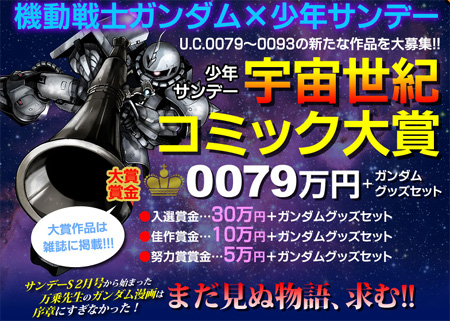 小學館的「少年SUNDAY」和鋼彈跨界合作舉辦的「宇宙世紀漫畫大賞」已於日前發表相關消息、也開始接受作品投稿了。