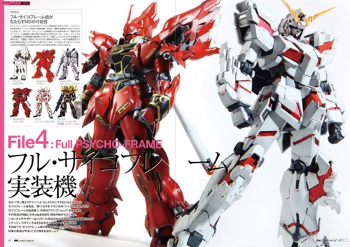 本期的刊頭特集是聚焦在5月17日(六)起開始上映episode 7「彩虹的彼方」的『機動戰士鋼彈UC』上。以MS「進化的系譜」為主題,刊登了獨角獸鋼彈(毀滅模式)以及新安州、德爾塔鋼彈、拜亞蘭特裝型2號機等由許多職業模型家發揮全力製作的超級範例。