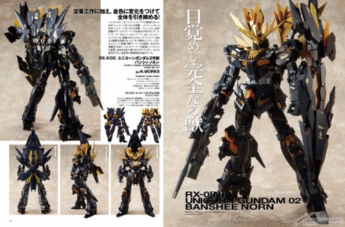 在封面上登場的HGUC全武裝獨角獸鋼彈(毀滅模式),也以大張的圖片介紹各種細節。